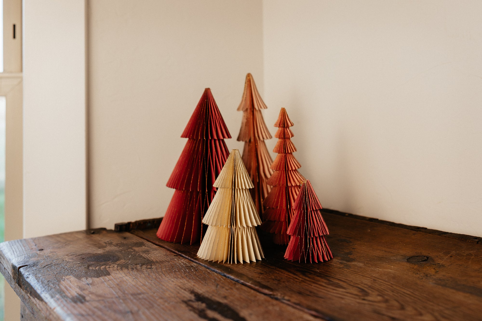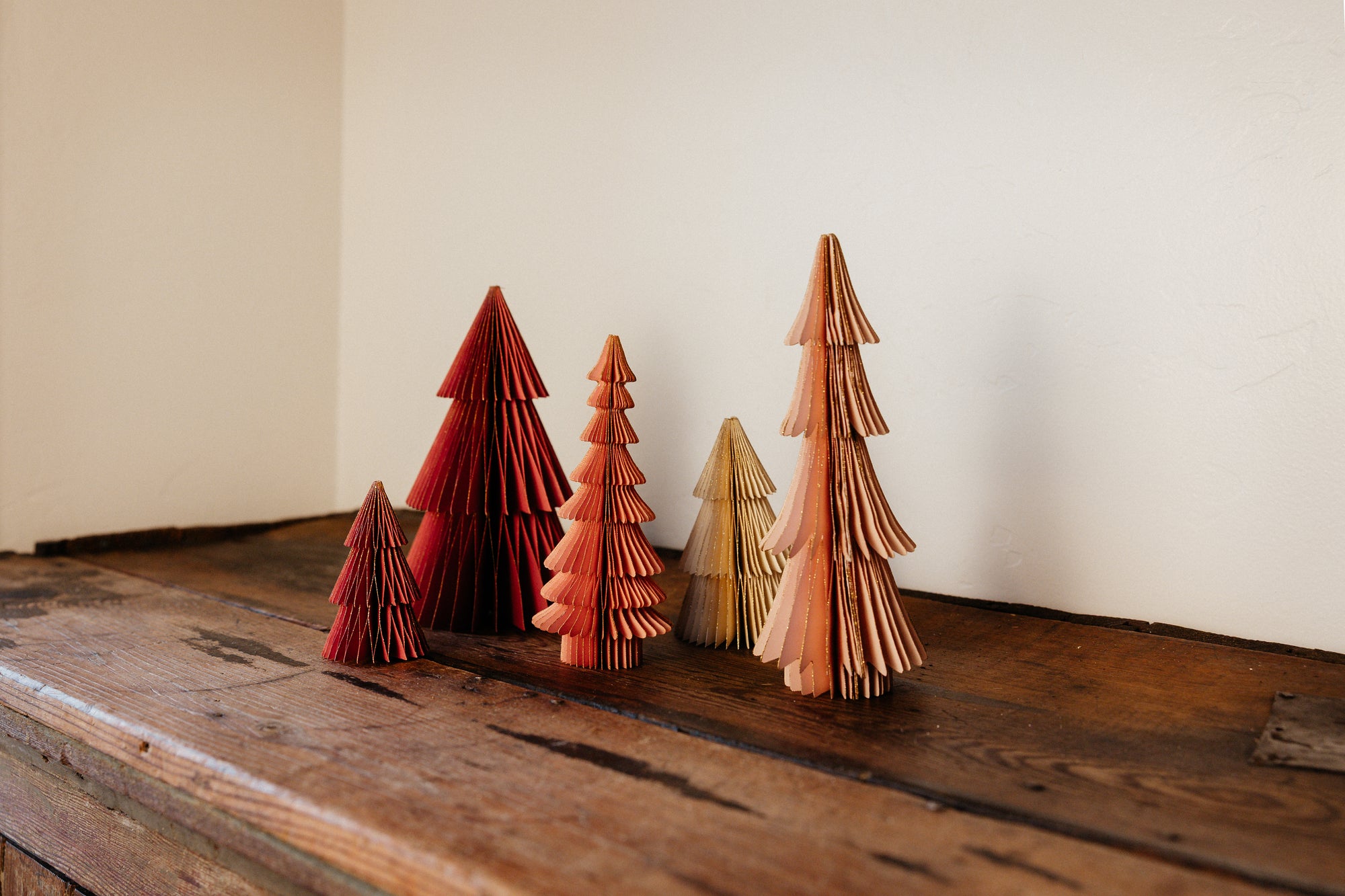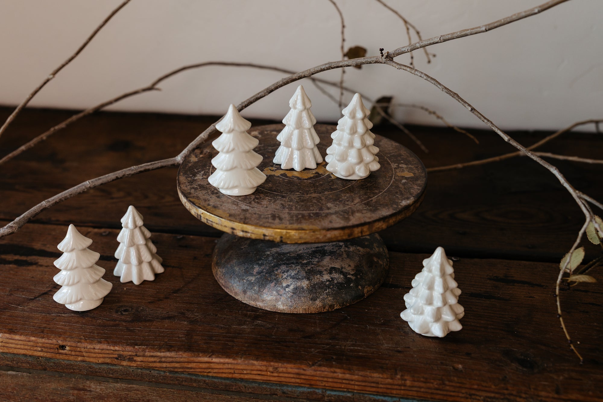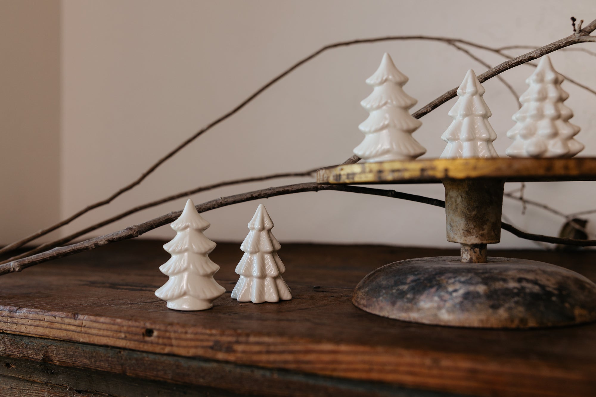 Set of 9 Stoneware and Wooden Christmas Tree Figurines