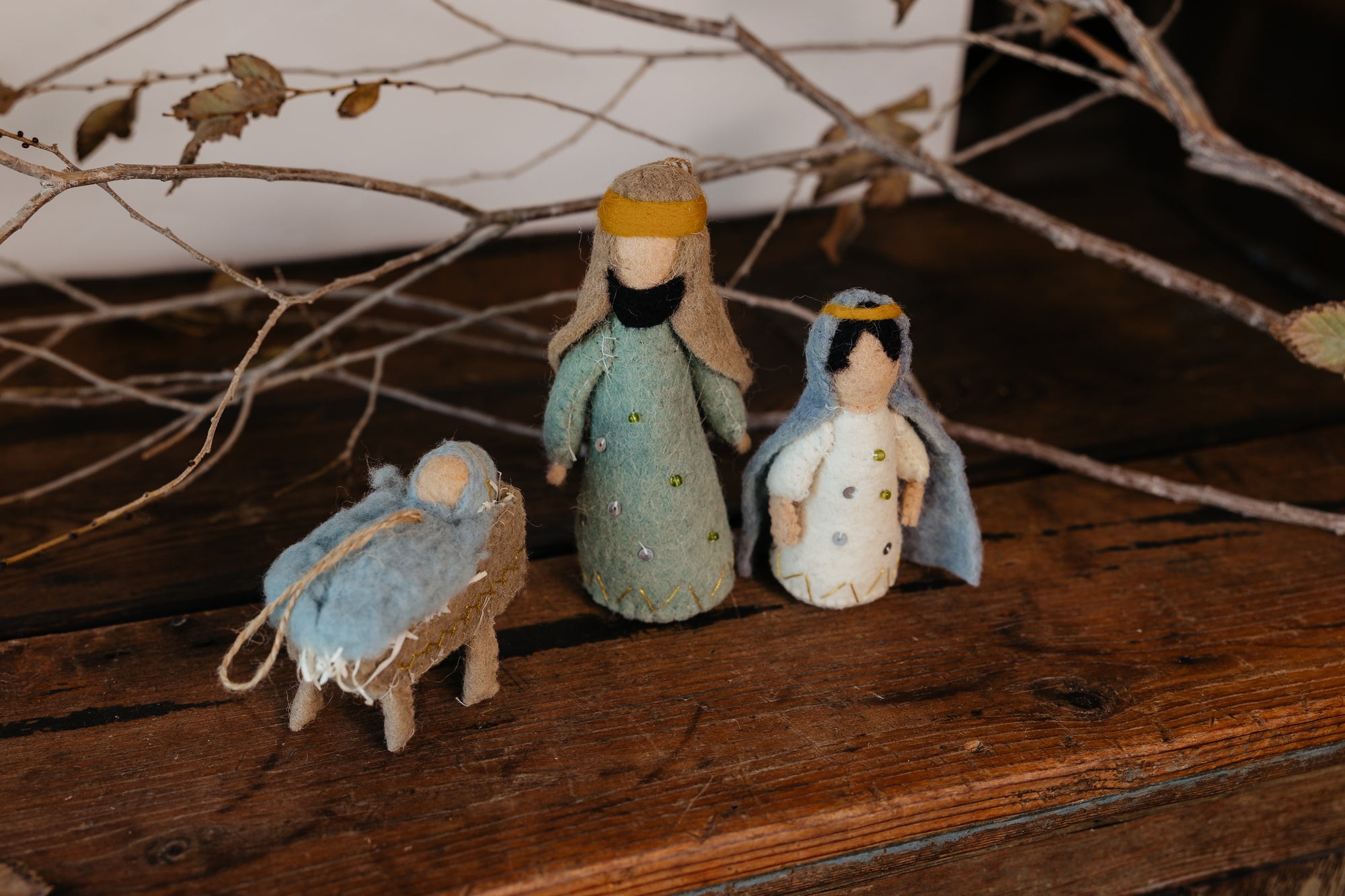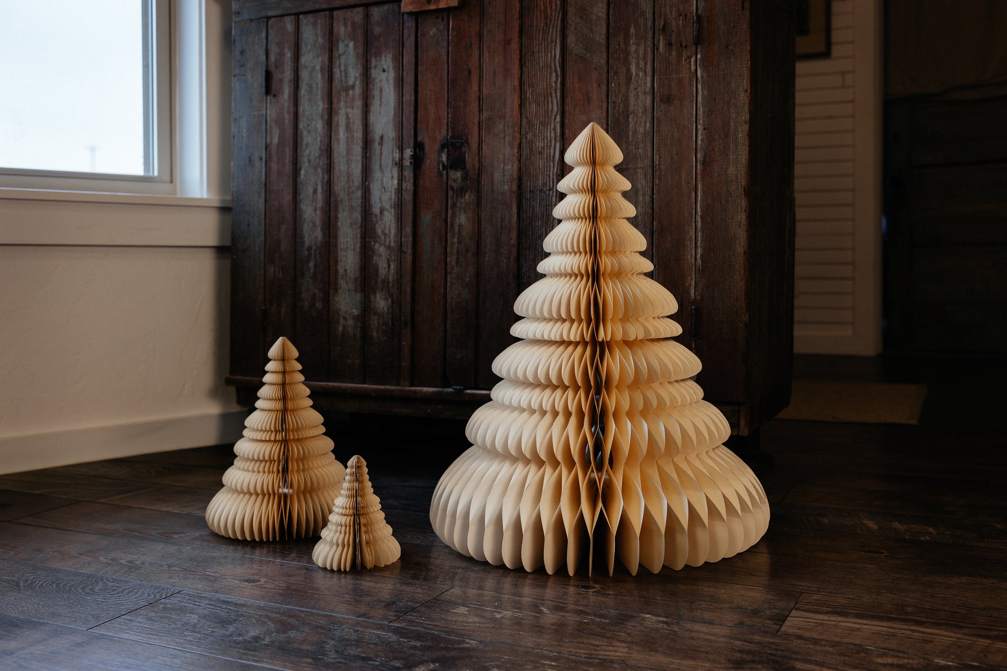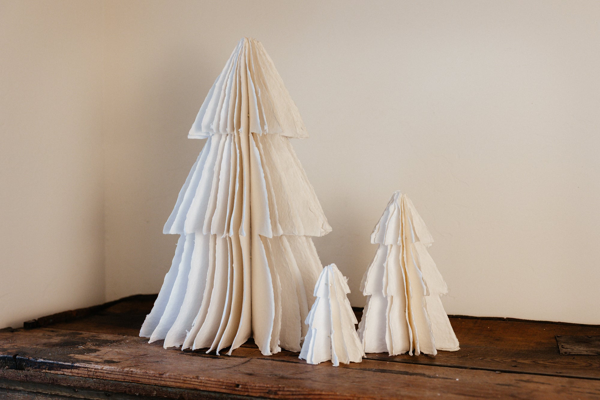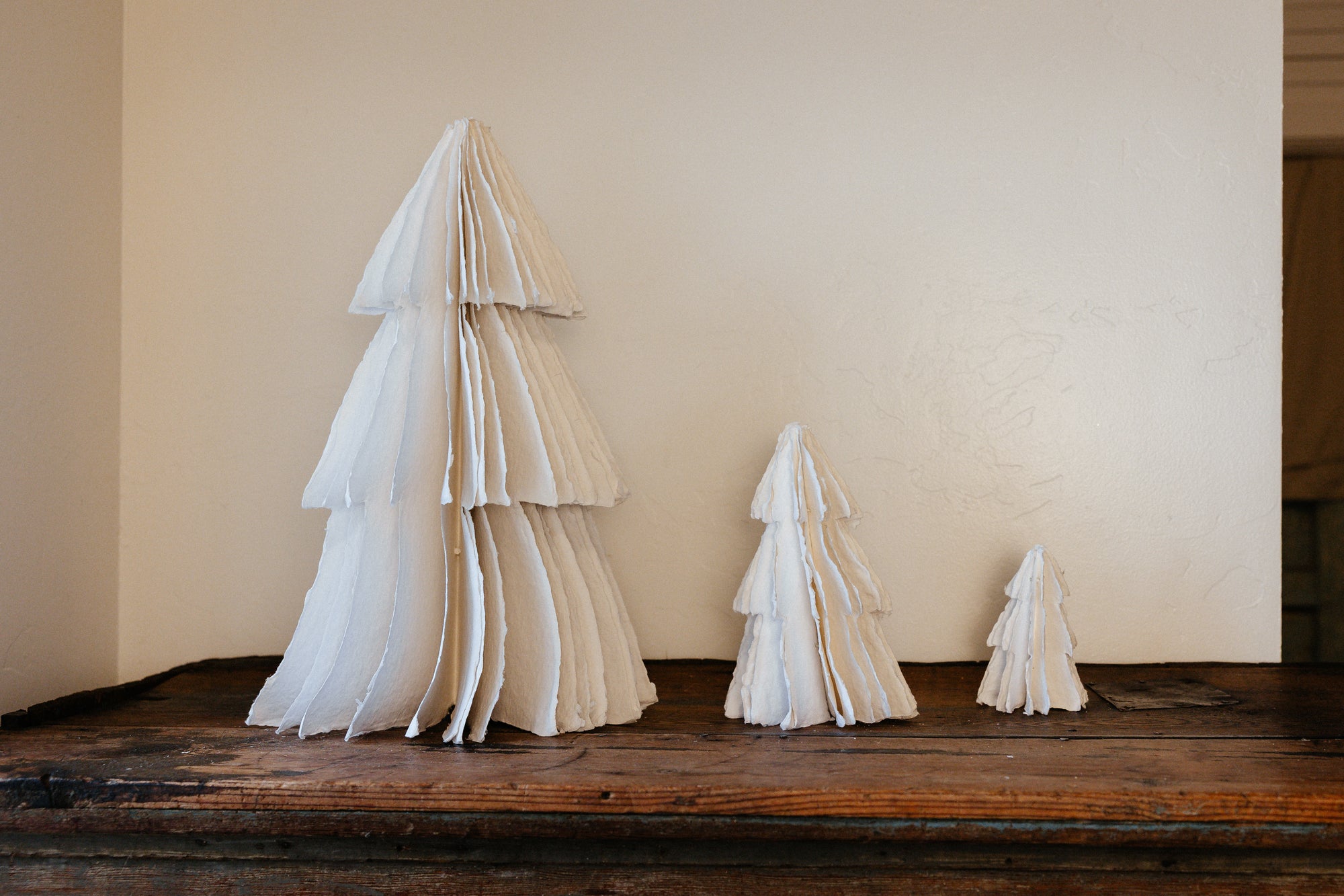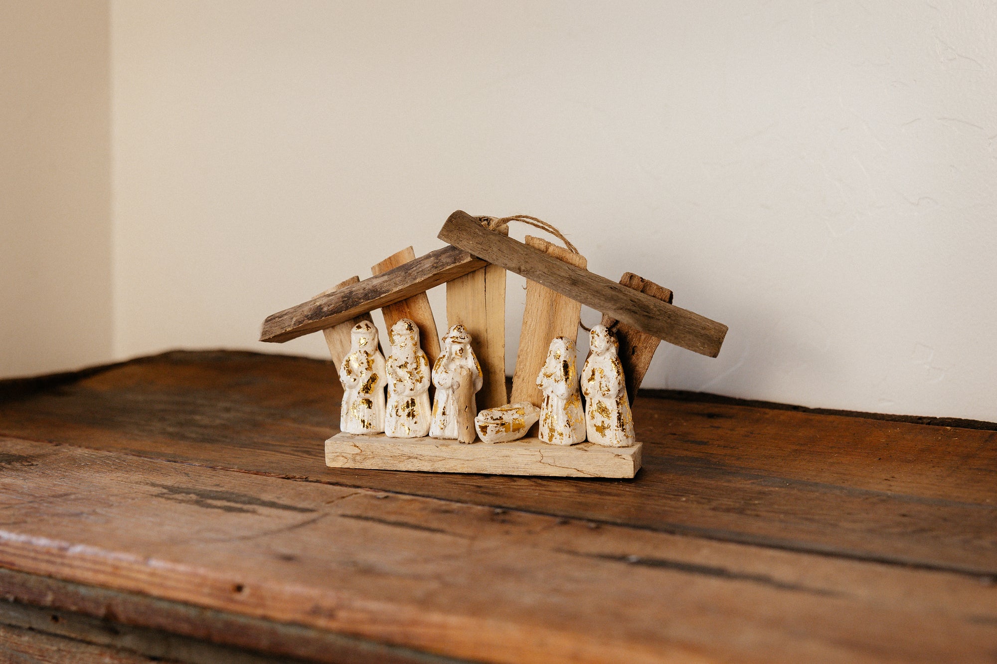 Set of 9 Stoneware and Wooden Christmas Tree Figurines