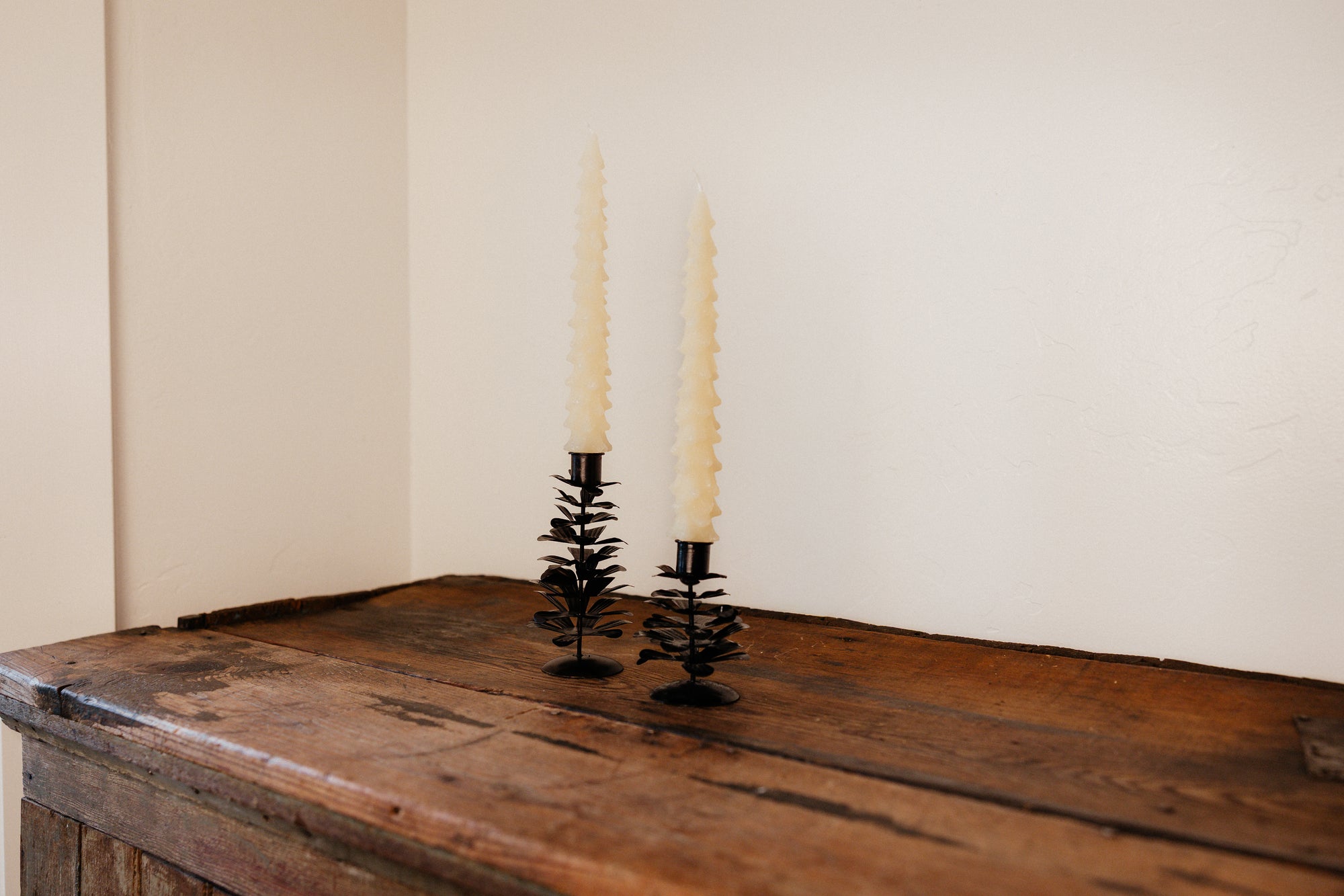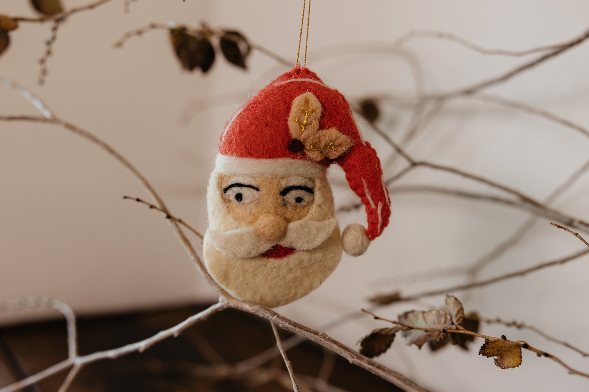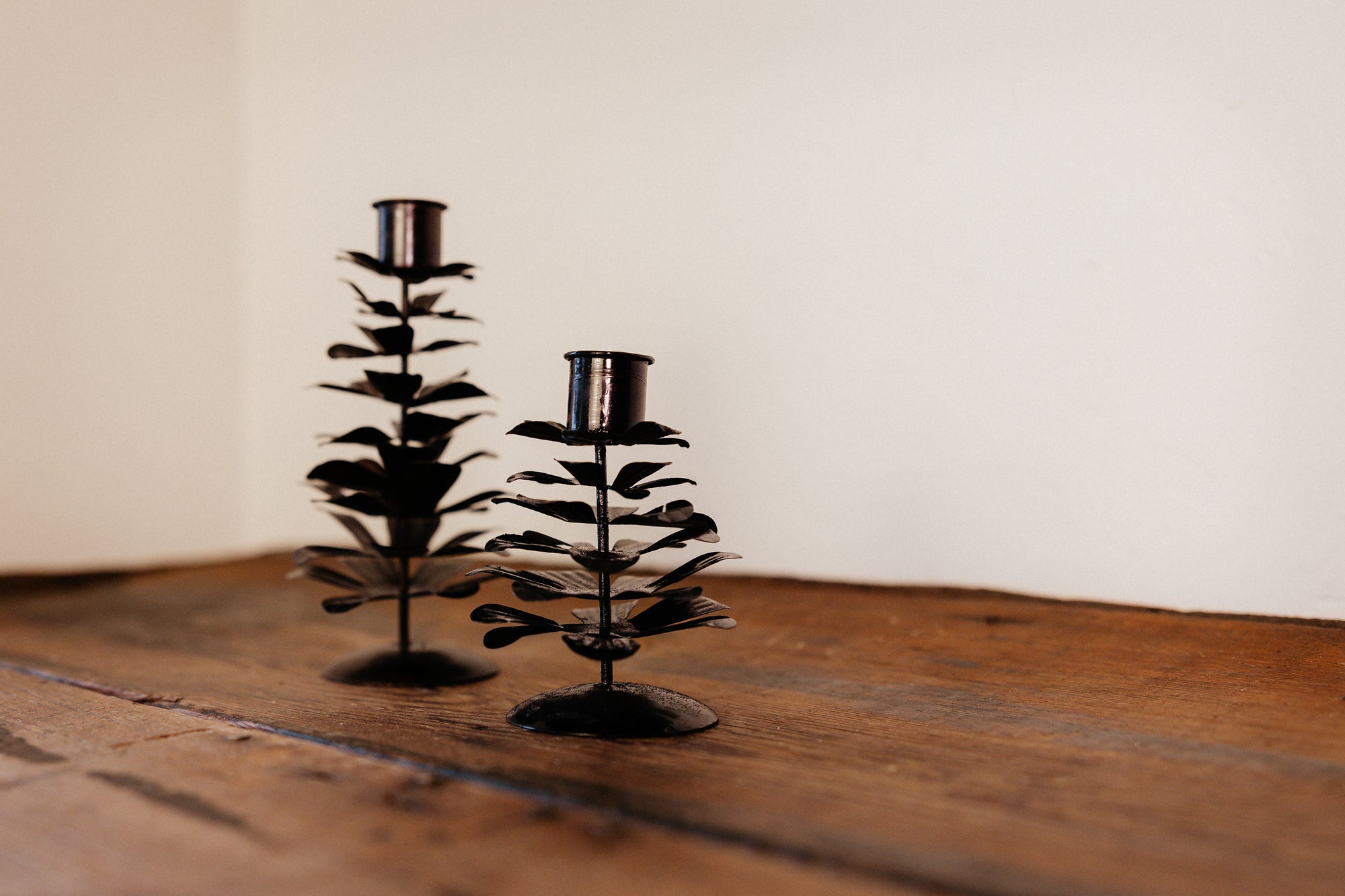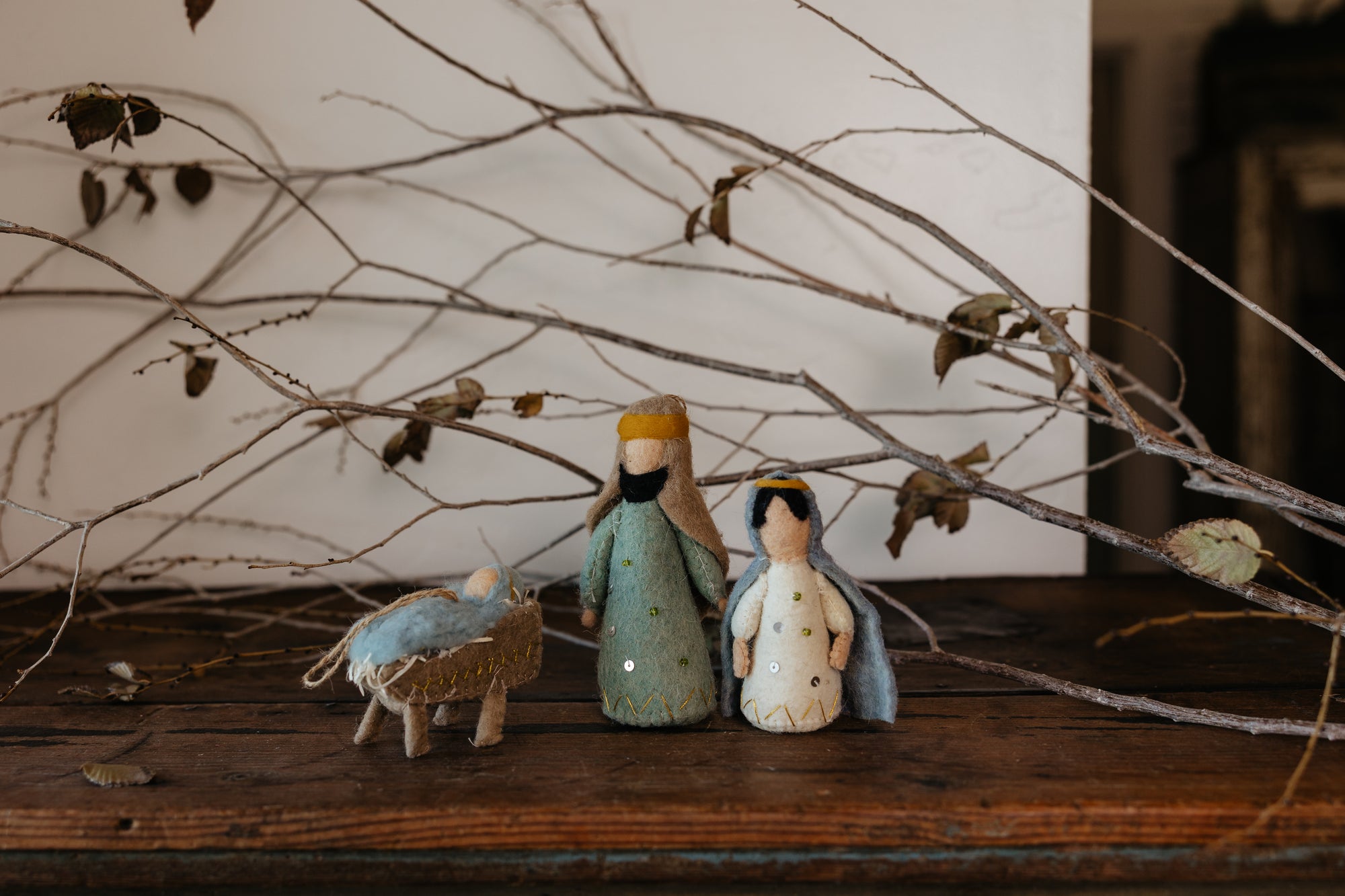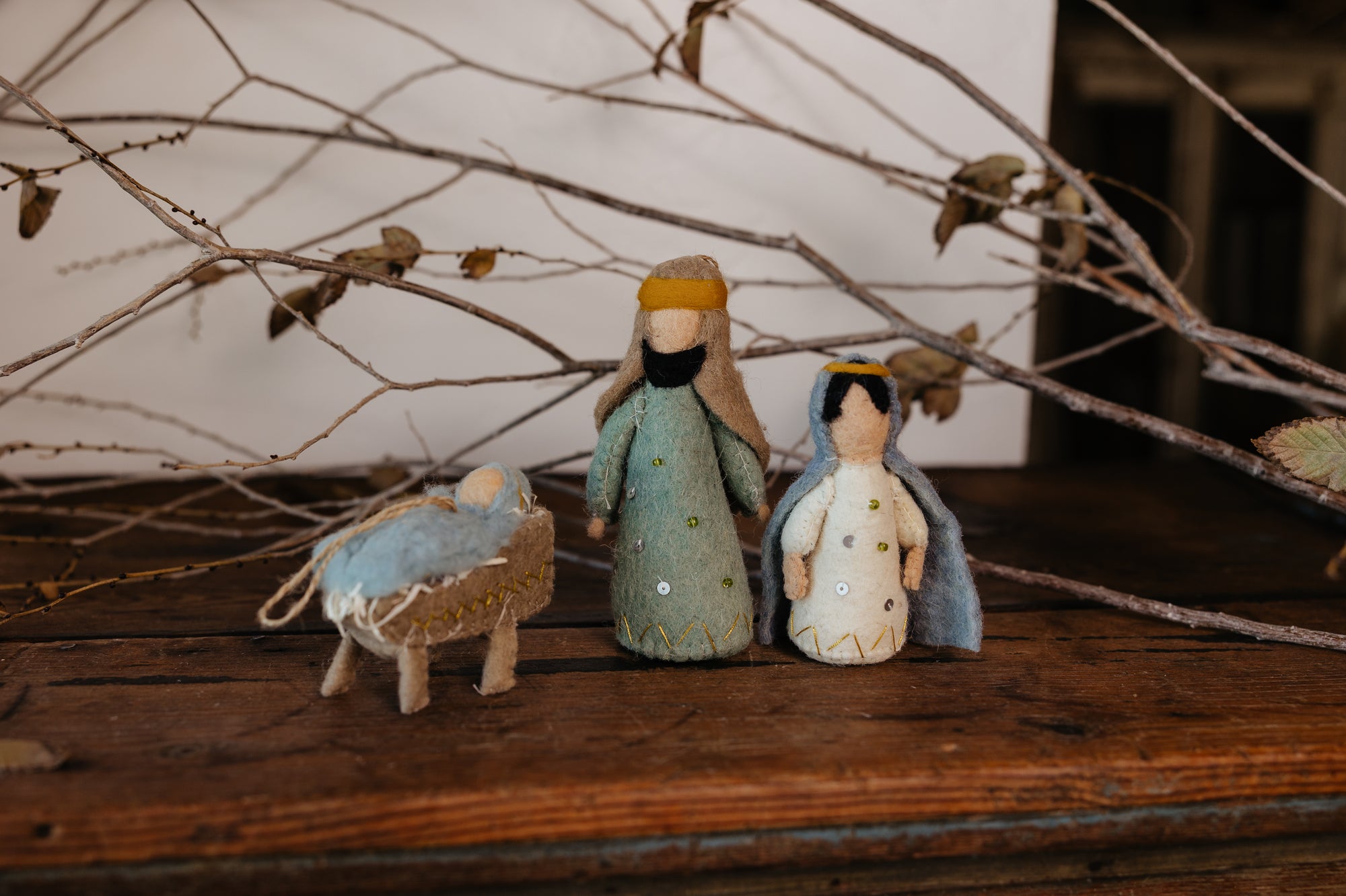 Set of 9 Stoneware and Wooden Christmas Tree Figurines