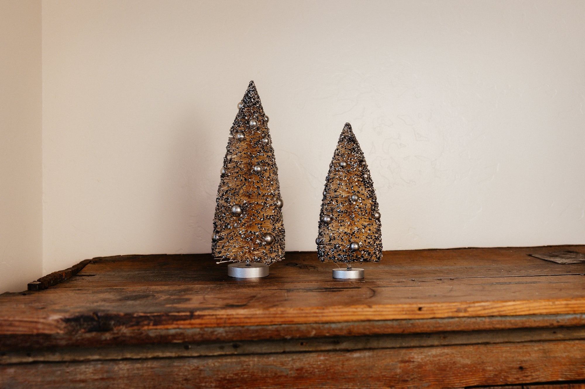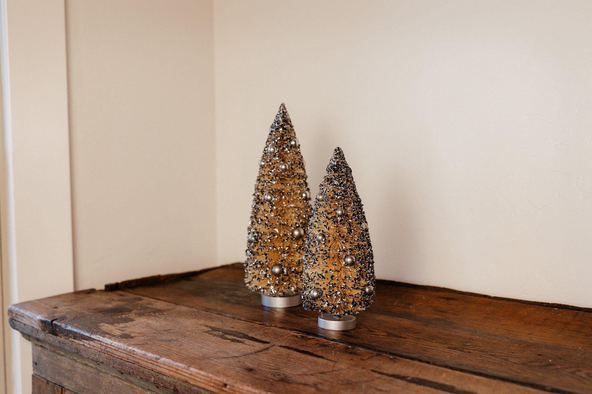 Black and Silver Pearled Bottle Brush Christmas Trees