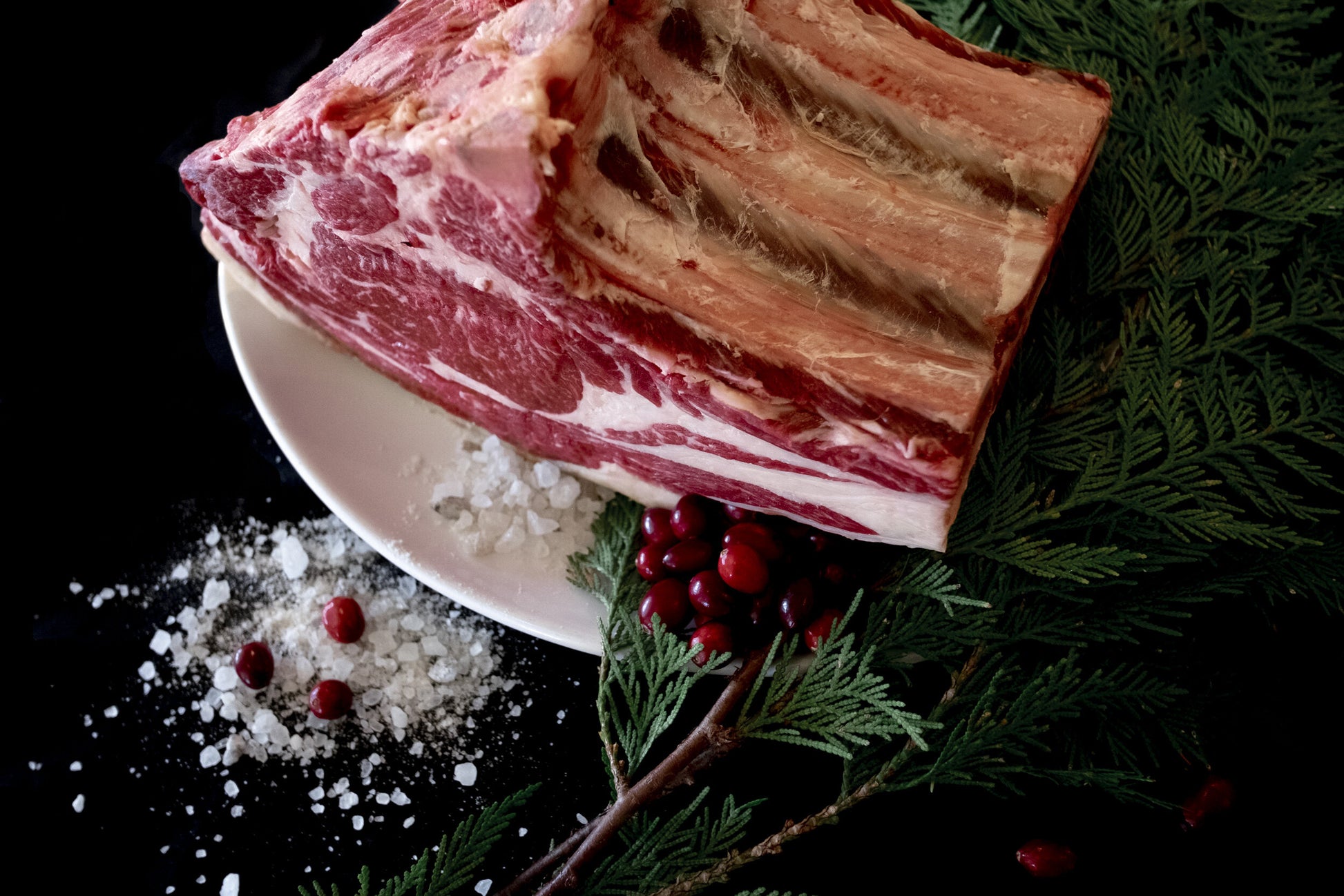 12-14 lb Prime Rib. Feeds 8-12 people. Perfect for Christmas dinner! Prime rib is much larger than the one pictured.